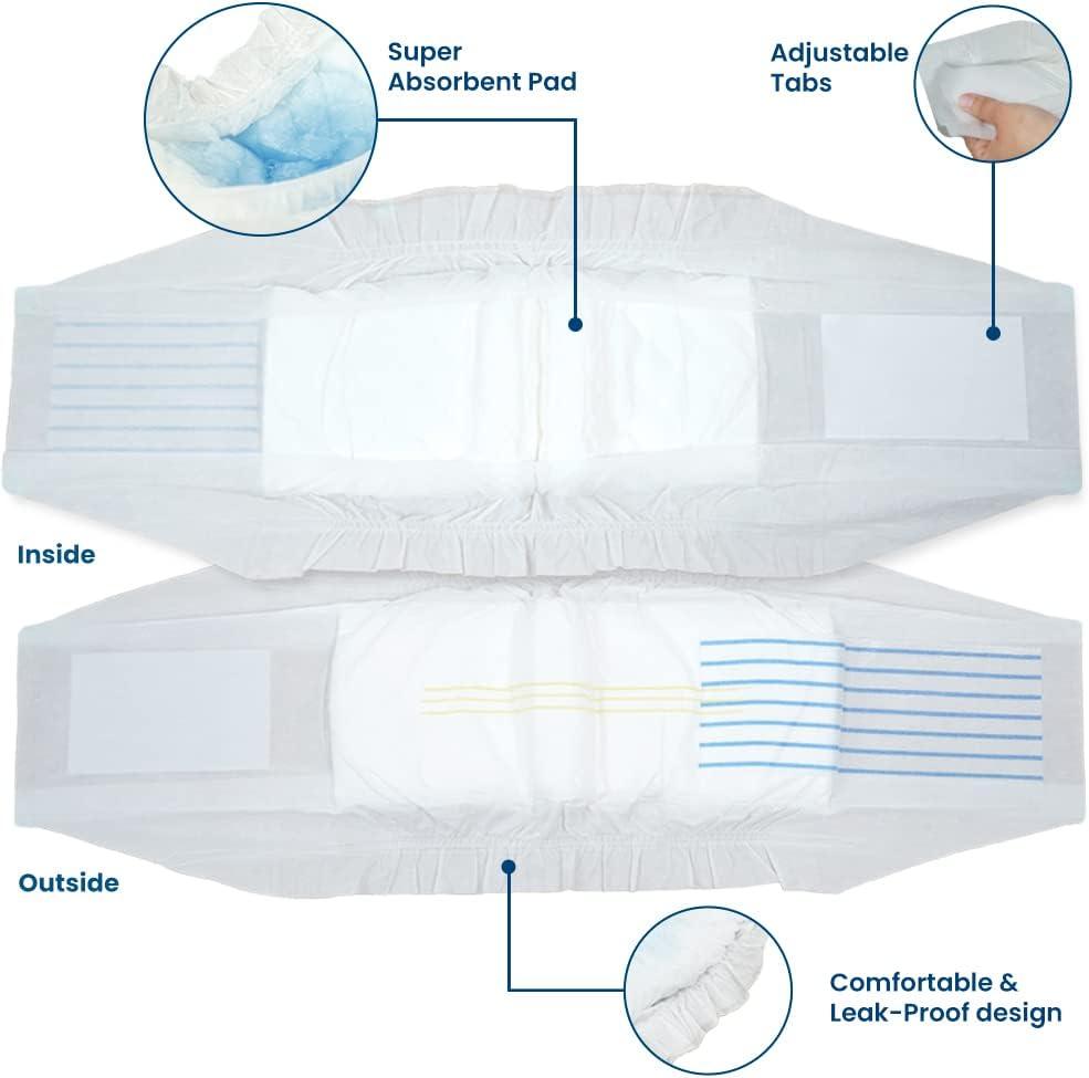 SUPERIOR LEAK-PROOF PROTECTION: Engineered with an absorbent polymer gel core and high-quality closure layers, these doggy diapers promise exceptional leak-proof protection. The secure fit ensures both comfort and reliability for your male dog, whether at home or on the go.